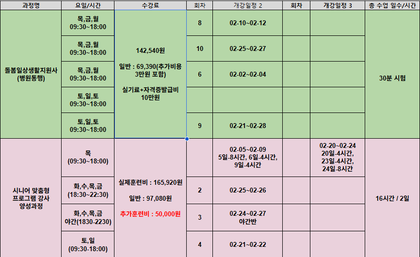 1. 인천 주안 한국직업능력평생교육원 2월 개강일정표