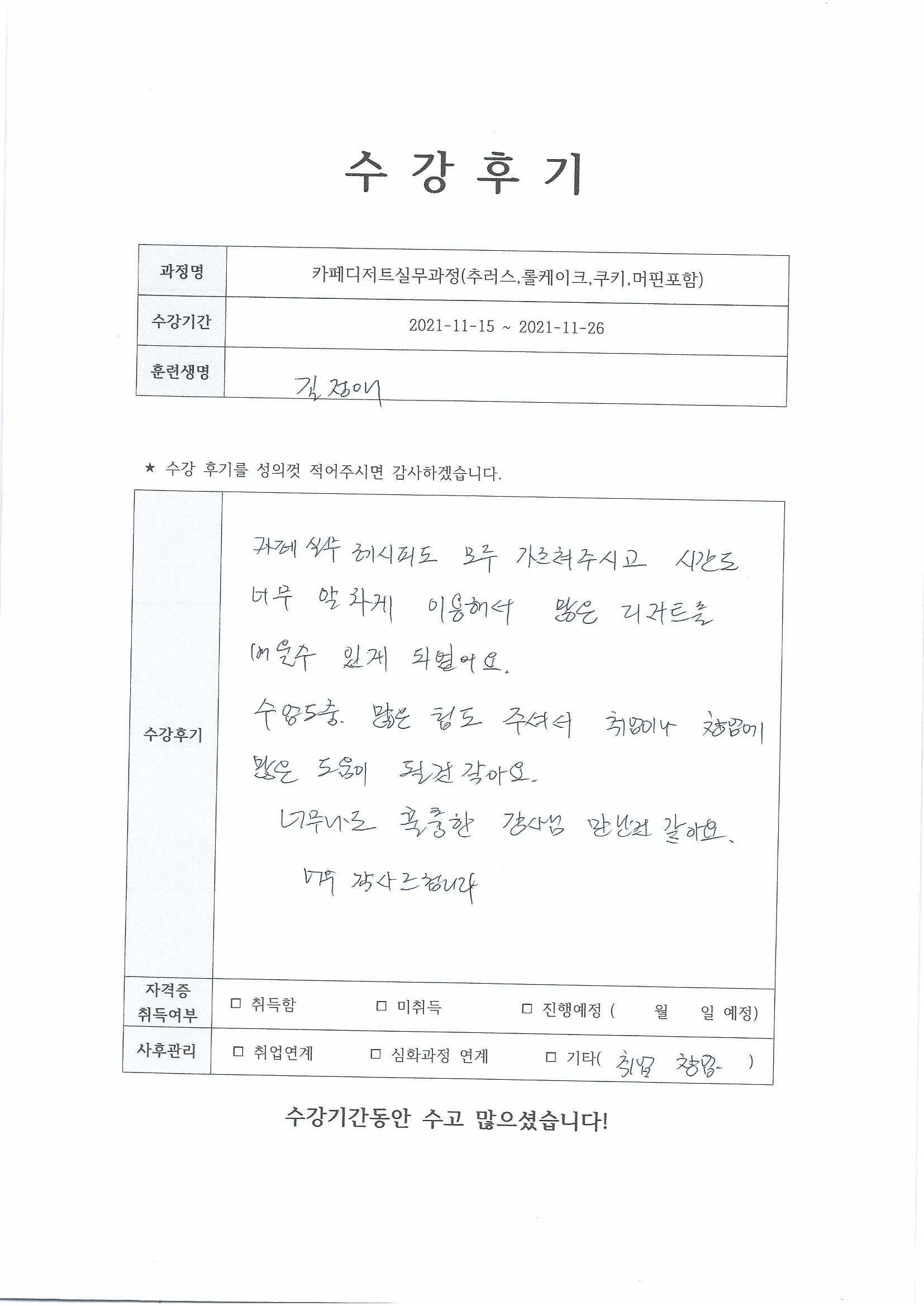 인천커피제과제빵평생교육원  학원설립 운영등록번호 제 3333 호