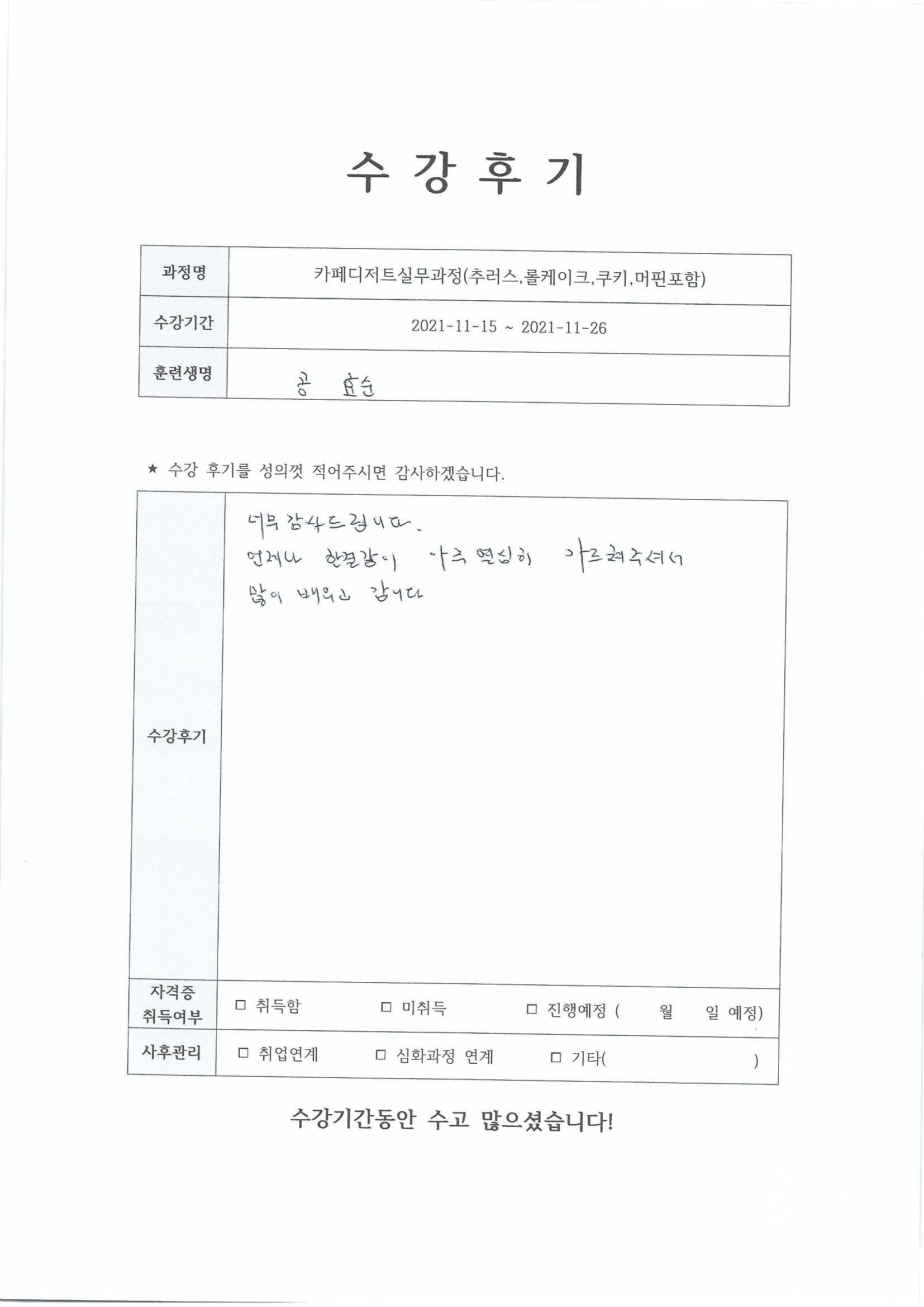 카페디저트실무(추러스,롤케이크,쿠키 머핀 포함) 70회차_주안지점