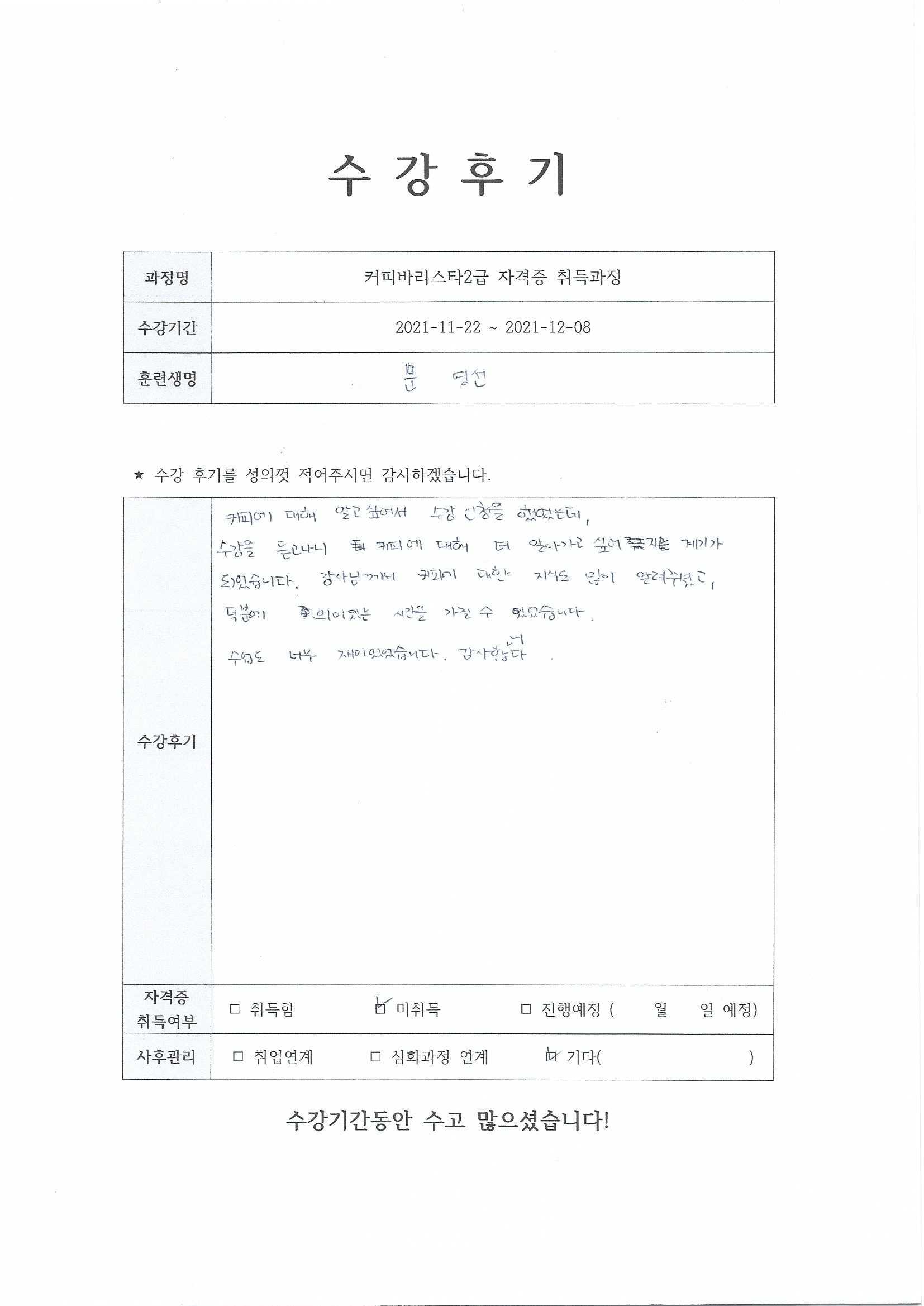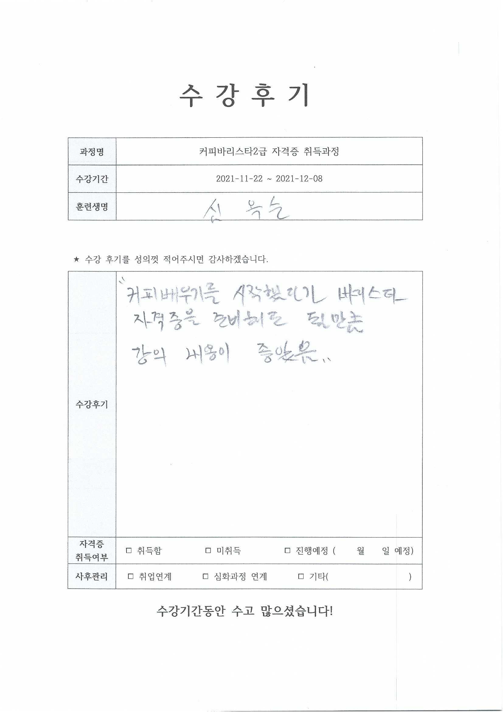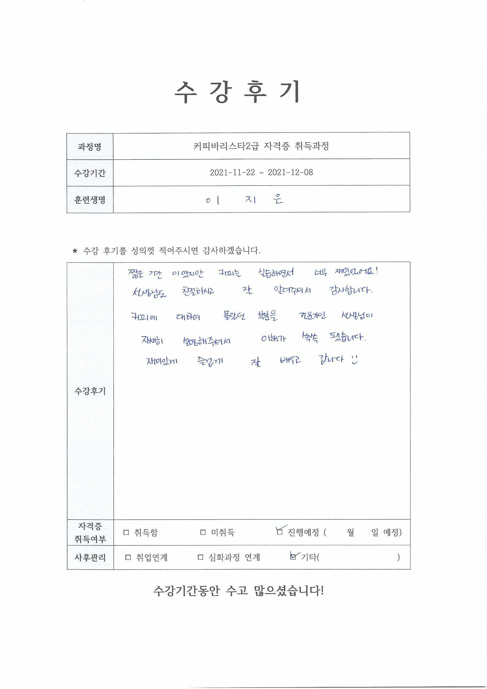 커피바리스타2급자격증 취득과정 14회차_주안점