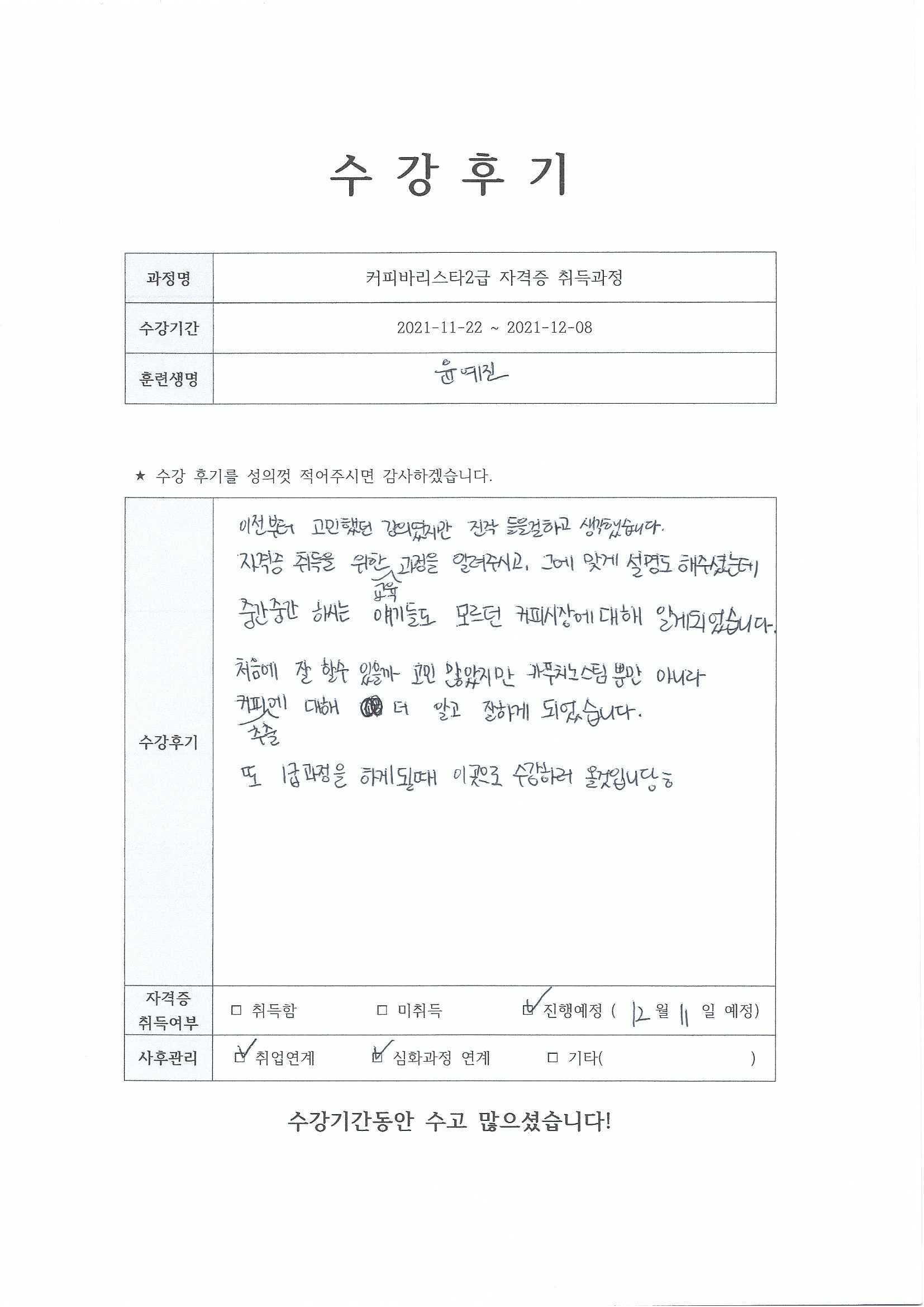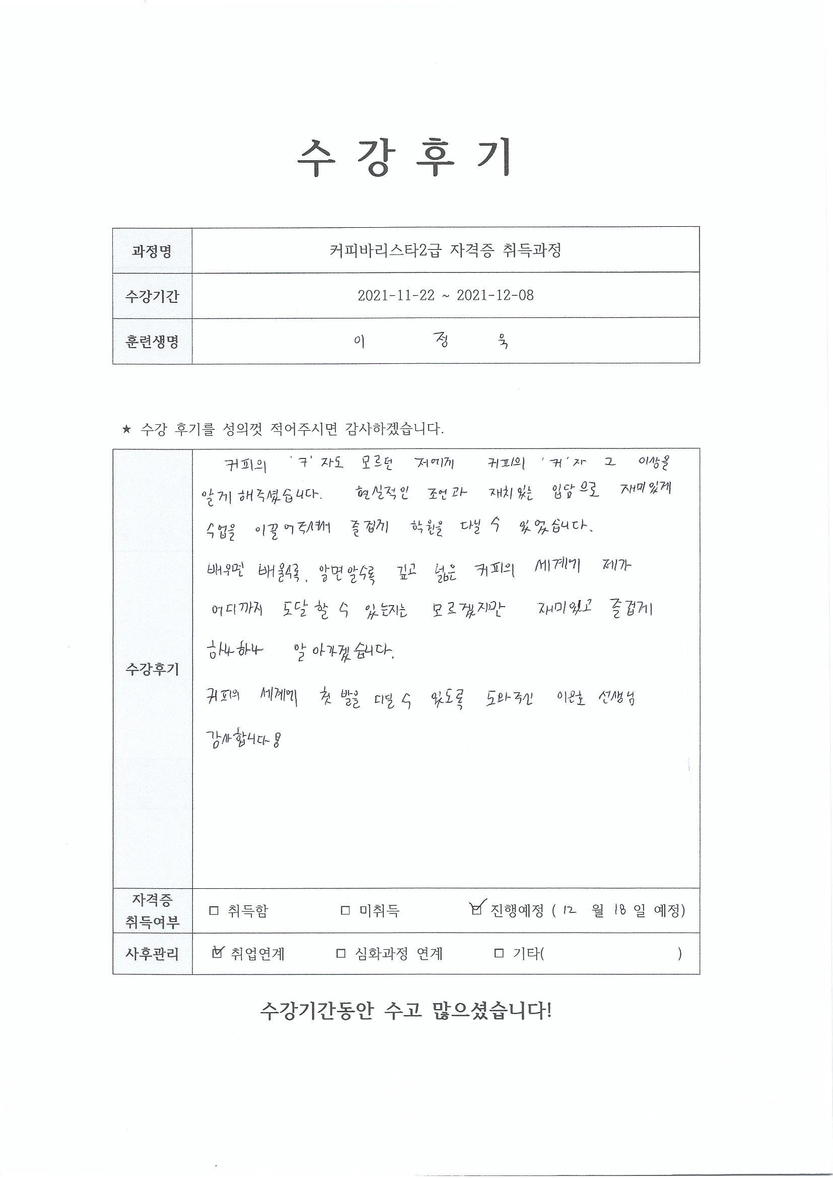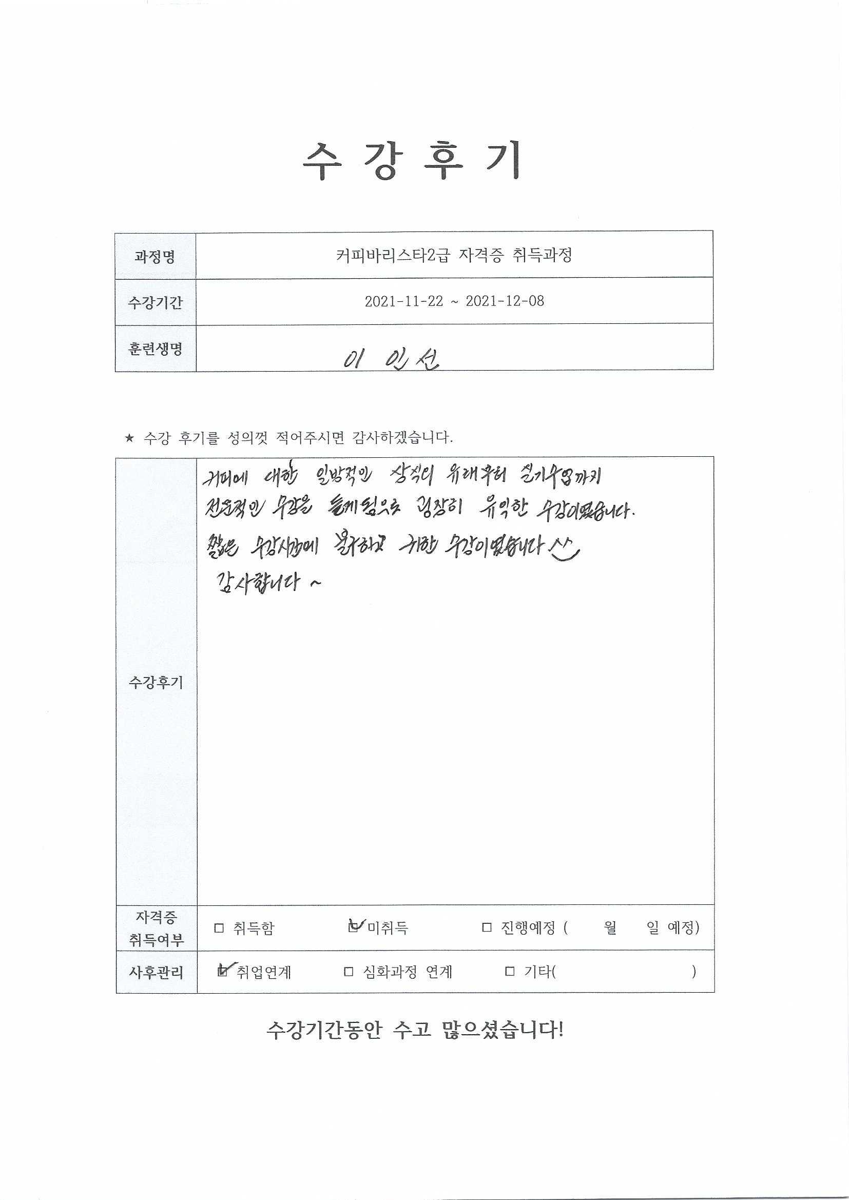 커피바리스타2급자격증 취득과정 14회차_주안점