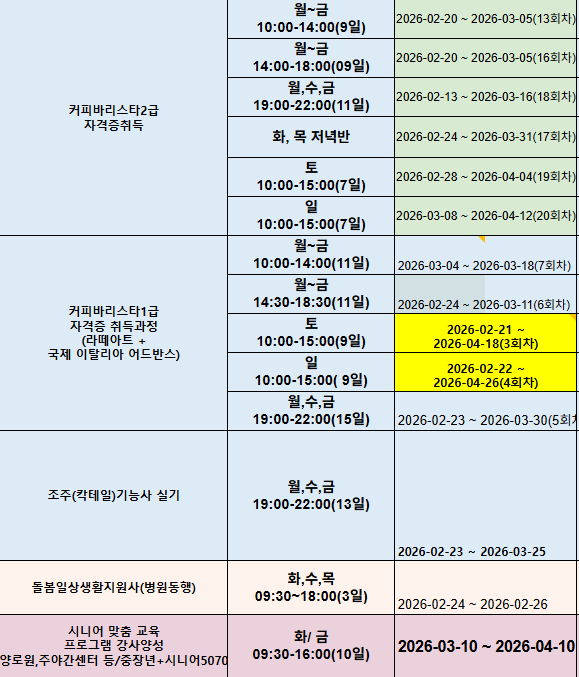 부천 상동점 2월~3월 개강일정표 안내드립니다.