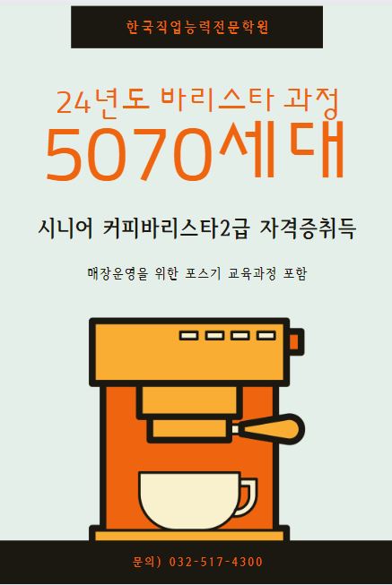 [부평점]24년도 신규과정, 시니어커피바리스타2급과정